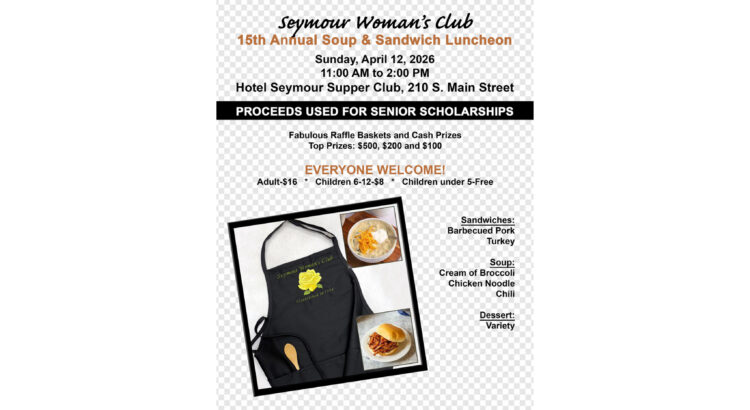 As the treasurer for the Seymour Woman’s Club, I will be devoting my spare time to this fundraiser. Craft and educational classes will resume at a later date. Thank you for understanding. If anyone is interested in donating towards this fundraiser for scholarships or is interested in purchasing luncheon or raffle tickets, feel free to contact me. Thank you!
